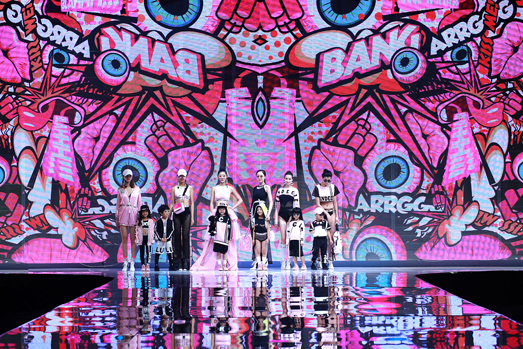 辣妈、萌娃的互动搭配是本章节的亮点,芬狄诗Fandecie和少女品牌LUCIE’S WORLD用相同的色系和元素打造亲子服的默契感和俏皮性,芭比粉、薄荷绿马卡龙色系、透视网格、SLOGAN等元素,突出了运动活力与轻快感,而胸前的99数字则代表了芬狄诗品牌创建于1999年,伴随着芬狄诗女孩从懵懂少女到时尚辣妈的成长蜕变。