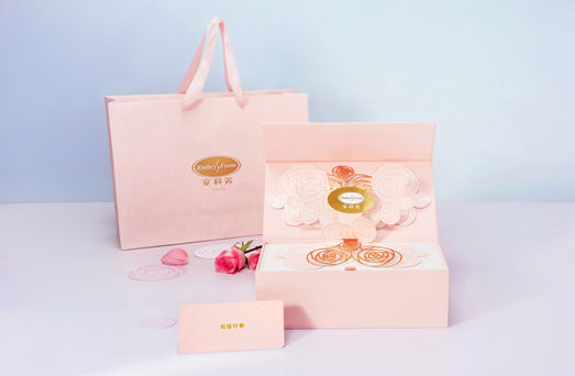 打开礼盒,由安莉芳椭圆logo组合而成的立体玫瑰造型,充满精致的艺术气息 。安莉芳推出这款礼盒套装,既象征着她是女性一生一世的美丽收藏,亦是她献给所有女性的礼物。