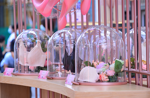 快闪店的中央,一朵娇嫩的机械玫瑰引人入胜,花瓣随时间缓缓绽放。玫瑰之下,展示的是沉淀安莉芳45年匠心工艺的经典之作。45年前,品牌创始人郑敏泰先生用面包机“切割”出了中国第一件立体围女性内衣,其亲自研发、纯手工制作的688模杯,因其真实自然,完美契合东方女性形体的立体造型效果,一直深受女性消费者喜爱。在快闪店,688和其他经典模杯一一呈现,这是安莉芳虏获一代又一代中国女性芳心的“终极秘密”所在。