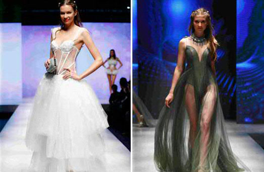 2015年安莉芳“海尚魅影”的设计灵感源于神秘莫测又幻化多变的大自然,结合隽永不变的时尚元素和潮流色彩,依次呈现“冰雪”、“水纹”、“秘境”、“美人鱼”四大系列,梦幻的抽象手法碰撞艺术的写实意涵,蕾丝、流苏、刺绣、钉珠等时尚流行元素的巧妙运用,以及冷暖色调的相辅相成,层层递进,仿佛一场优雅的邂逅融化在无尽的秘境中,绽放出摄人心魄的美丽,给人无限遐想。